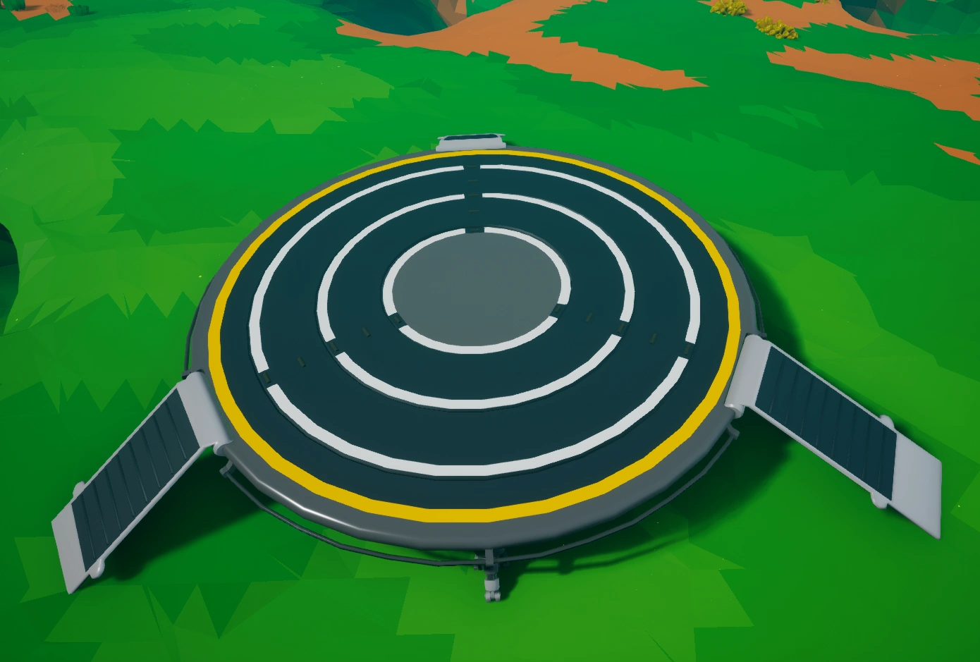 Astroneer. Eine spezielle Form der Landeplattform wird neben der