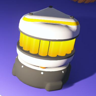 Astroneer, die Energie mit bis zu 16 Balken (512 Einheiten) speichert. Sie kann an einem Tier-2 Steckplatz angebracht werden, nicht jedoch an einem Mittelgroßen Lager, einer