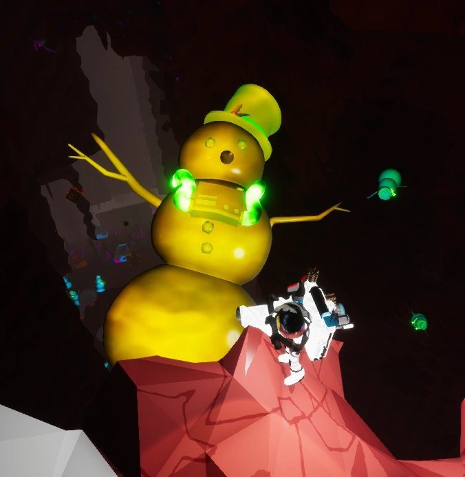 Ice-olated Specimen during Breakdown Event grant various basic (not refined) LTE resources. Snowmen can be rarely found on surface, but are frequently found in the caves, mantle and outer core regions of every planet. The deeper regions having more of them, and different drops. Each snowman drops just a single random item. They can be reached a lot better whilst holding a digging tool.