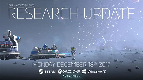 Patch 0.5.0, also known as the Research Update, released on December 18, 2017. This marked the move from the Pre-Alpha to the Alpha stage of Astroneer.