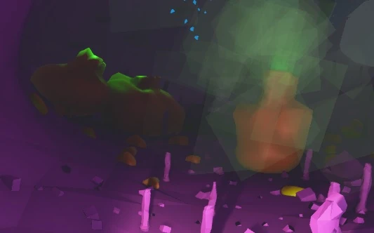 毒坛(Acid Pot)是形似南瓜的植物,在玩家靠近时会释放毒雾。毒雾会飘向玩家并造成最高可以致死的伤害。好在毒雾会随着距离消散,玩家也可以用地形工具移除它们。它们常常三个一组出现,每株毒坛的下方通常会有有机研究物品,周围也常能找到有机物。